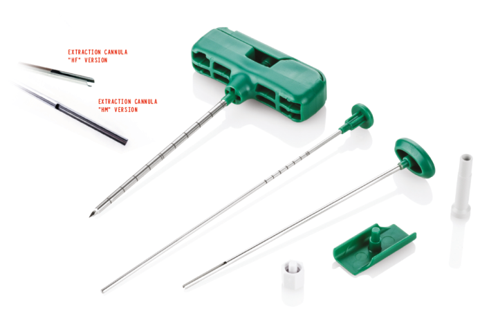 Специальное покрытие иглы дает возможность получить на выходе идеальный ровный столбик биоматериала для гистологического исследования с помощью специального экстрактора: